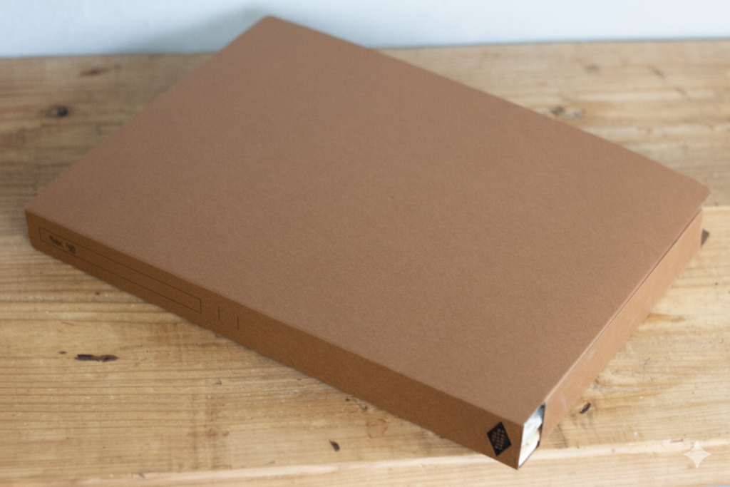 色:インテリアに馴染みやすい、チョコレートブラウンのニュアンスのある紙でできています。黒ほど圧迫感がなく、木製の家具のように暮らしに寄り添います。白やベージュほど汚れが目立ちません。背表紙の文字がカメラ越しに判別しにくい絶妙な色味なので、プライバシーを守りつつ、オンライン会議などで背景に映り込んでもおしゃれです。